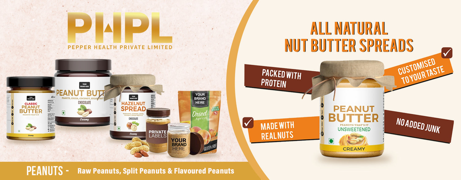 We are a leading private label manufacturer of peanut butter, chocolate spreads, and other nut spreads. At Pepper Health Private Limited, we are dedicated to producing high-quality, healthy snacks that are both delicious and nutritious.
